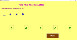 Can you find which of the 5 letters at the bottom of the screen is the missing letter in the word at the top of the screen? The choice of words are generally 3 and 4 letters long but there are some longer ones for a challenge.