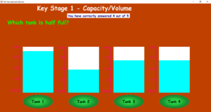 Water is poured into 4 tanks but are filled with different amounts. You are then asked a question about their capacities. For example you might have to identify the tank which is half full. A score is kept of how well you did.